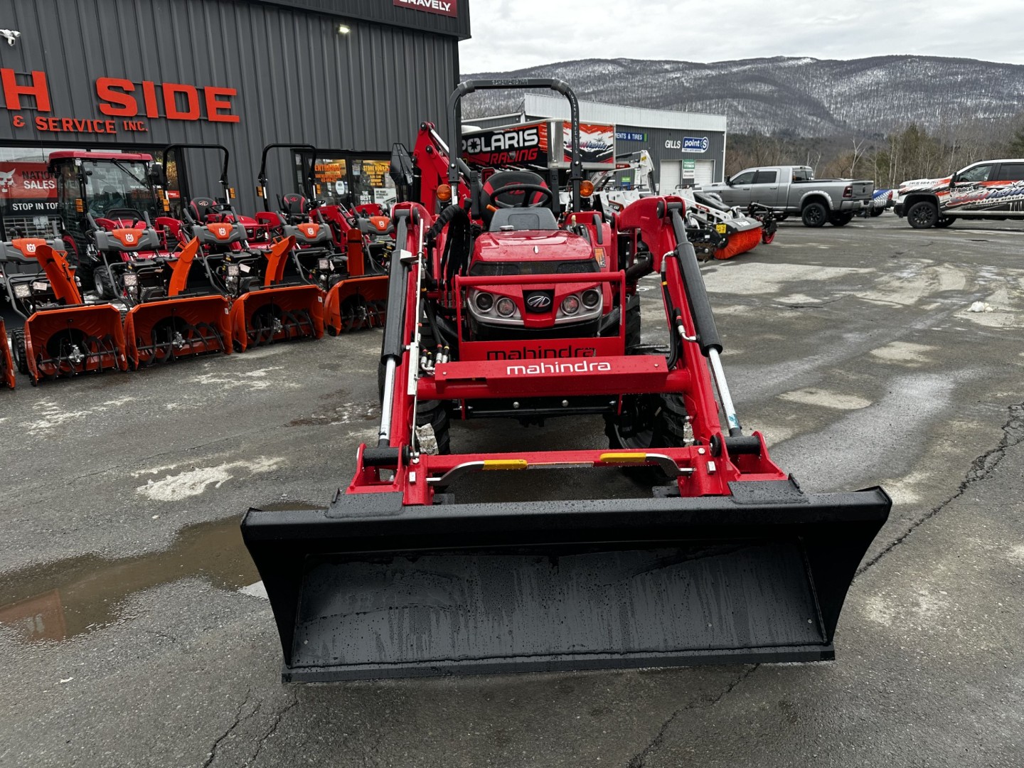 Mahindra 1635 and 1640 batteries deliver up to 925 cold-cranking amps, ensuring their engines start every time, even in wintry conditions. Add a climatized cab at additional cost and one of many snow removal attachments to tackle any snow-related task easily.
